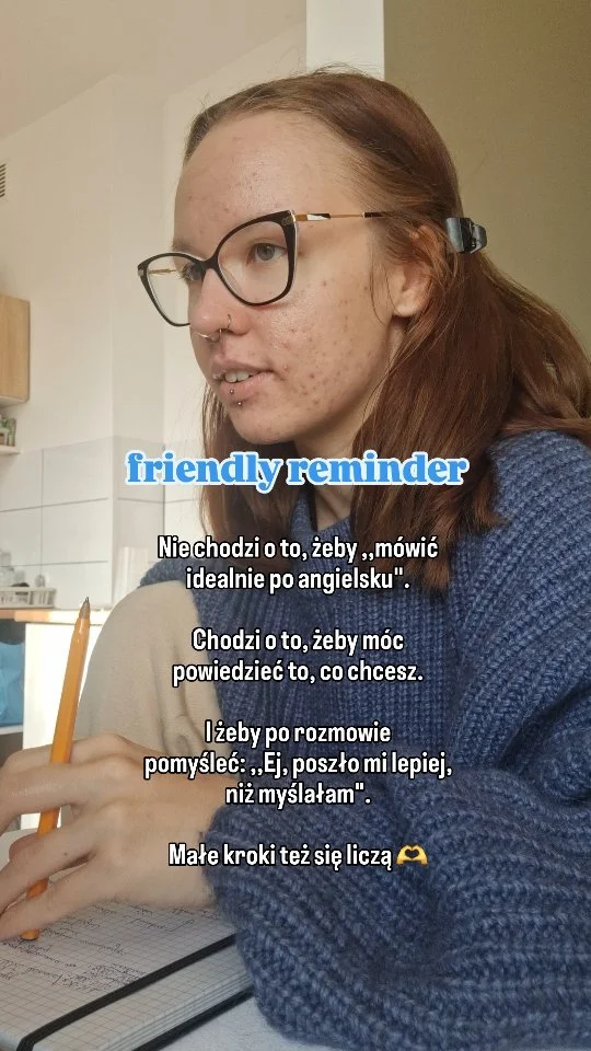 Od lat pracuję z osobami takimi jak Ty i wiem, że kluczem jest nie tylko gramatyka i słownictwo, ale przede wszystkim budowanie pewności siebie i stworzenie środowiska, w którym nie ma miejsca na strach przed popełnianiem błędów. Wierzę, że nauka języka powinna być przygodą, a nie stresującym obowiązkiem. Dlatego na moich zajęciach i w moich materiałach stawiam na przyjazną atmosferę, humor i praktyczne zastosowanie języka.
