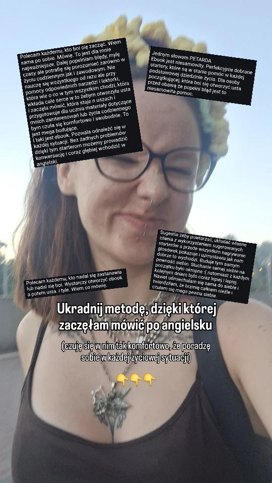 Lekcja Zapoznawcza to 30-minutowa rozmowa, która zmieni Twoje podejście do angielskiego - pogadamy o Twoich problemach, uczuciach, który wzbudza w Tobie angielski i ustalimy wspólny plan działania, dzięki któremu zmienisz swoje podejście i w końcu zaczniesz mówić! Lub zacznij od naszych ebooków w sklepie! ⬇️